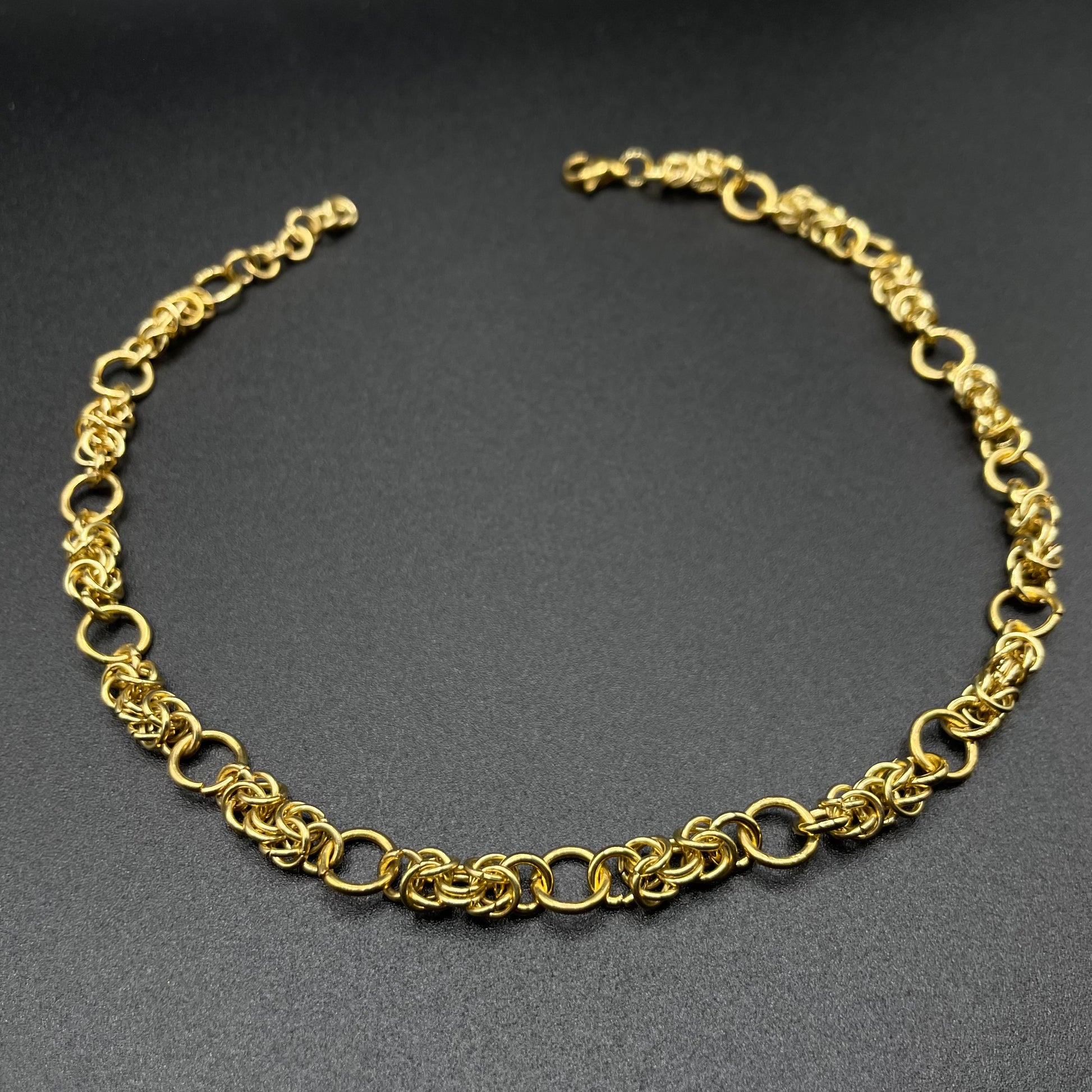 Intricate Byzantine weave necklace from gold plated stainless steel.